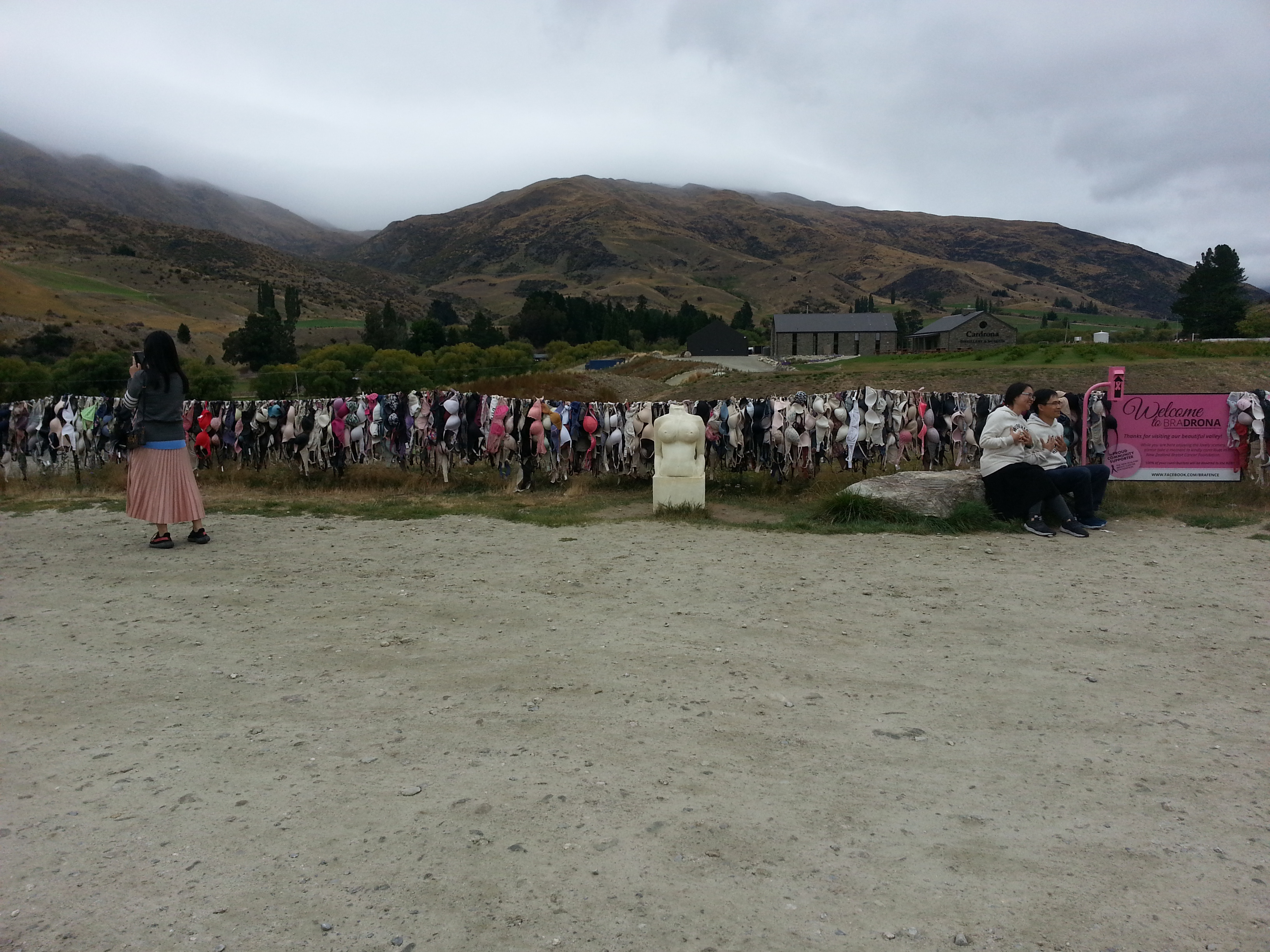 At Cardrona I came across a very strange site of hundreds of bras hanging off the fence.